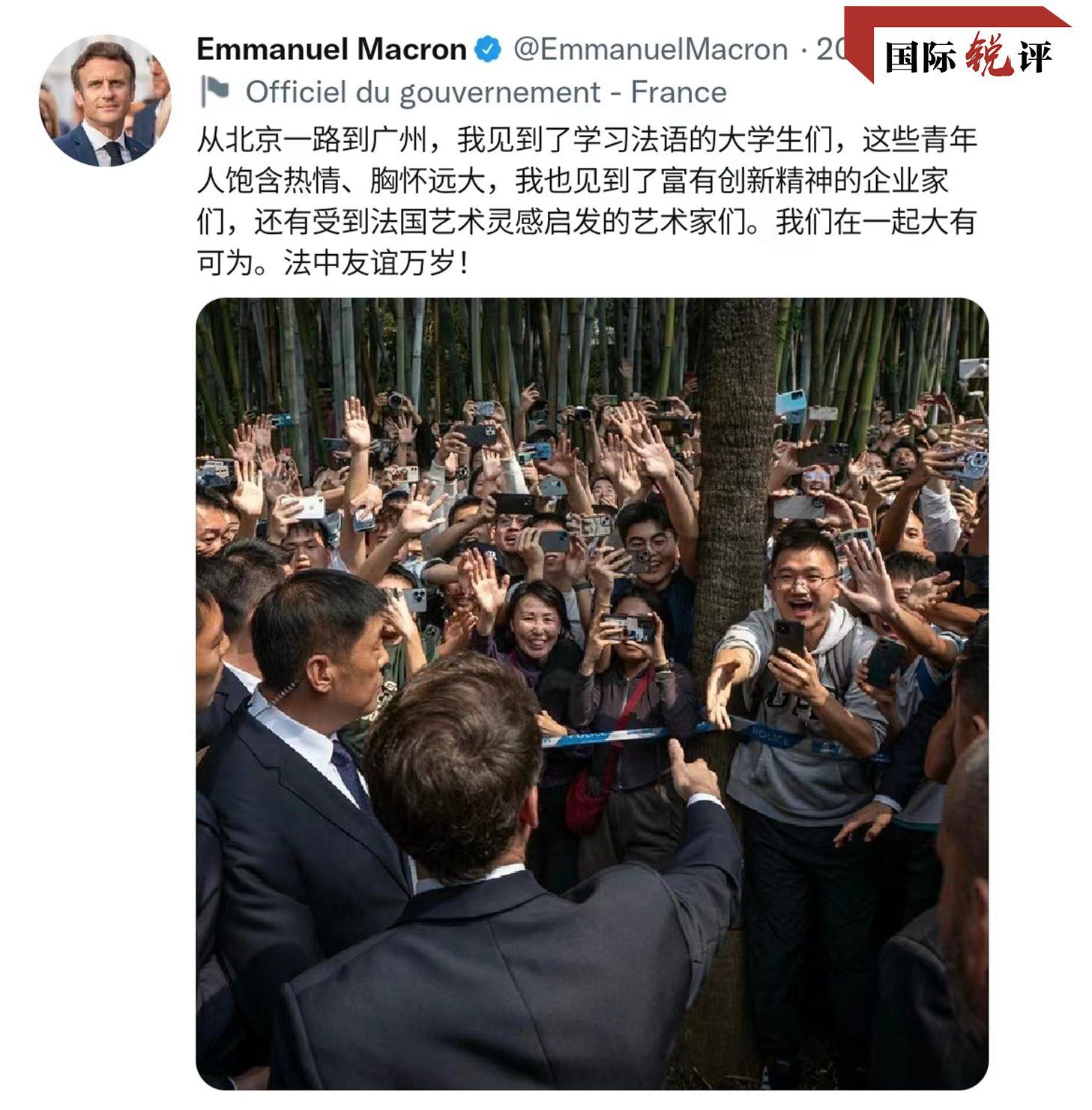 “我们在一起大有可为。法中友谊万岁!”4月7日,法国总统马克龙在社交平台用中英法三种语言发文,分享他刚刚结束的访华行程。同一天,英国《金融时报》援引分析人士的话称,“从长期来看,无论是加强与中国的经贸合作,还是推动解决乌克兰危机,马克龙此行都有积极意义”。