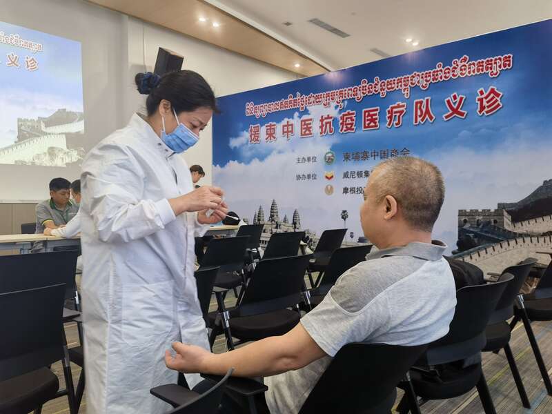 中国青年报客户端金边4月9日电(中青报·中青网驻柬埔寨记者 王岩)4月8日,柬埔寨中国商会邀请中国援柬中医抗疫医疗队,为商会会员单位在柬员工及家属进行义诊。16位中医专家现场提供专业咨询并对症施诊,他们来自呼吸科、急诊科、综合内科、心理咨询、心内科、消化内科、风湿免疫科、神经内科、骨科、针灸科及护理等多个医学领域。100多名中国籍和柬埔寨籍民众当天到现场排队接受中医诊疗。活动主办方和医疗队还向就诊民众免费发放了价值1.4万美元的药品。
