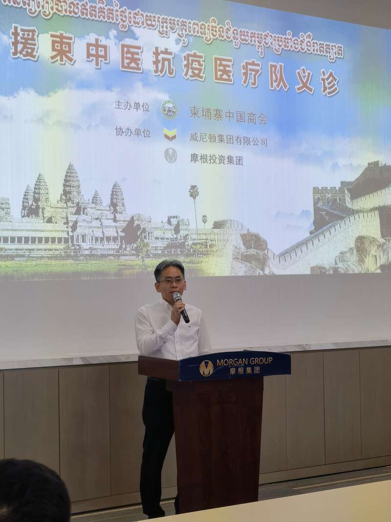 柬埔寨中国商会会长、中国工商银行金边分行行长林士强感谢中国援柬医疗队为商会企业员工进行义诊,对医疗队大力弘扬“不畏艰苦、甘于奉献、救死扶伤、大爱无疆”的中国援外医疗队精神表示高度赞赏。