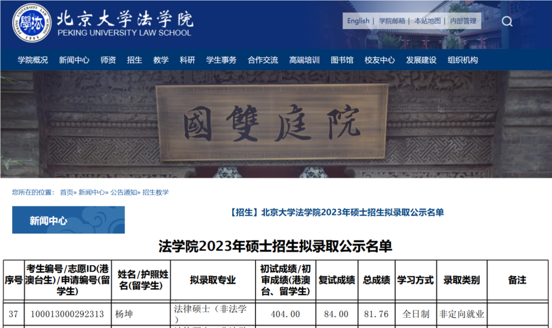 杨坤在大学各个阶段都从没有荒废过自己的学业。大一入校以来,他就积极备考ACCA(国际注册会计师),这段经历极大地提高了他的英语能力。同时,他也加入了学院的创新竞赛部,积极参与组织和备战各类学科竞赛。从大二下学期开始筹备考研,最终决定备战法学专业。对于选择跨考法硕(非法学)专业,杨坤表示,在学习专业课的过程中发现金融和法律有很强的关联性,并且之前看过《令人心动的offer》这个节目,让他对法律知识产生了浓厚的兴趣。而选择北大,杨坤的理由让人称赞,“我们烟大是北大清华援助建设的,烟大学子的骨子里流淌着清北的血液,我对北大一直也是非常向往,就是因为这个原因,让我坚定地选择了报考北大。”