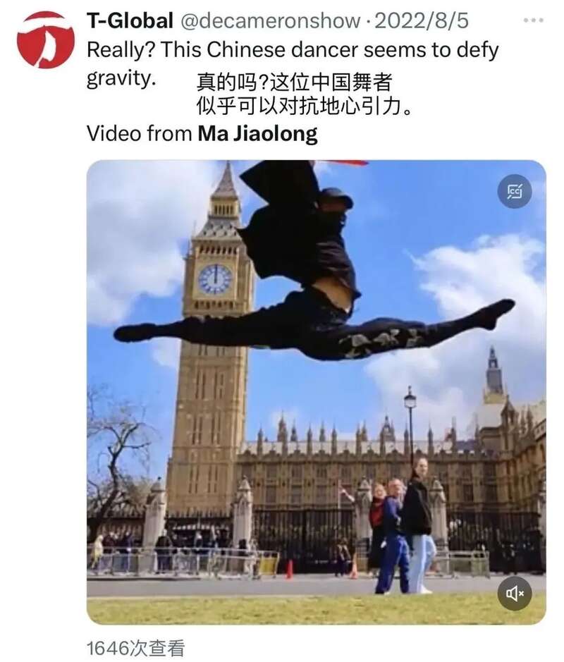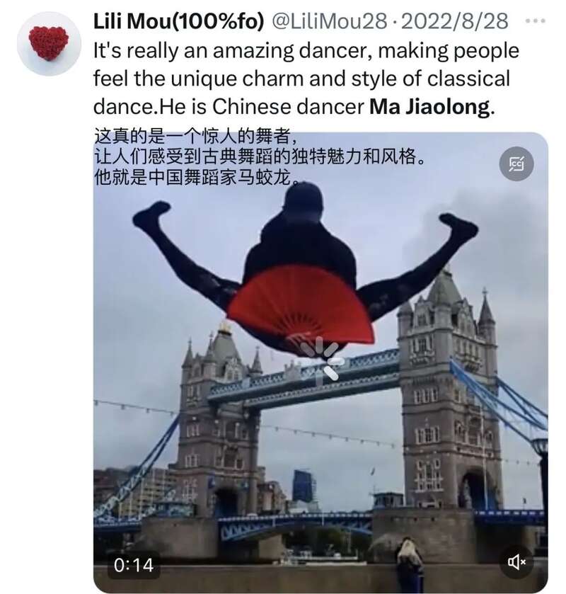 几年前,中国舞者马蛟龙在英国伦敦街头练习“轻功”的大场面,引发外国网友在社交平台上的震惊发言:“这个中国人会飞。”英国媒体也发文报道这位“功夫了得”的舞者。
