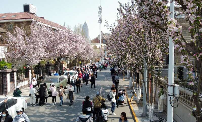 清明节前夕,和煦的春风吹开了天津市和平区五大道景区的海棠花,将一栋栋小洋楼间的各色小店装点得格外美丽。