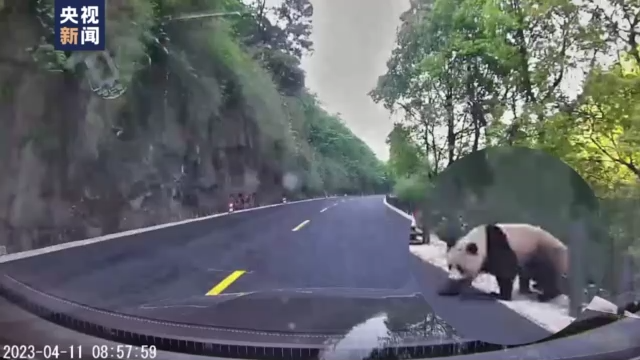 4月11日早上8点57分左右,四川成都大邑县市民驾车上班途中,在大邑大西路䢺江大坝附近,偶遇一只野生大熊猫。该市民看到后赶紧掉转车头寻找,但大熊猫已消失丛林中,只有行车记录仪上留下了珍贵的画面。