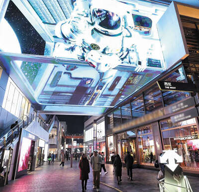 在三里屯太古里南区高悬的大屏前,人们纷纷驻足,用手机记录下裸眼3D带来的身临其境之感。对常来购物的徐女士来说,这样的炫酷体验,是吸引她前来的原因之一。