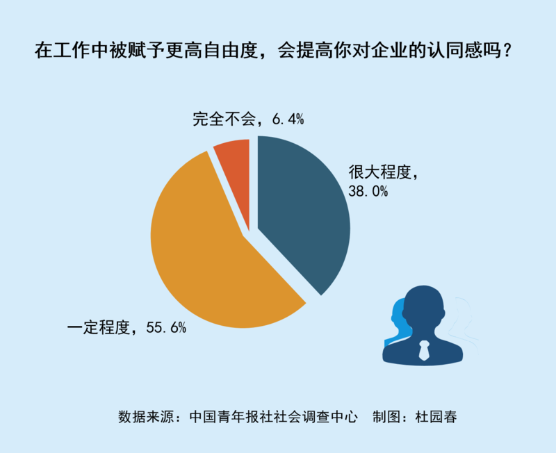 93.6%受访青年表示在工作中自由度高会提高对企业的认同感