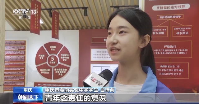 重庆市潼南实验中学校学生吕梓萌:我们应该要有“国家之安全、青年之责任”的意识,为了维护国家的安全,我们要贡献我们的知识和力量。