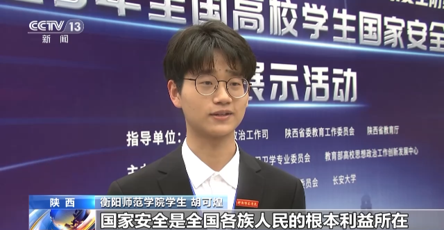 衡阳师范学院学生 胡可煌:国家安全是全国各族人民的根本利益所在,青年一代作为国家的希望和重要力量,更有责任和义务去维护好国家安全。