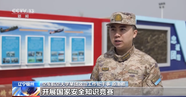 空军航空大学某团政治工作处干事原渤皓:开展国家安全知识竞赛、总体国家安全观授课等形式丰富的活动,增强了官兵的敌情意识,提升了防范保卫工作能力。