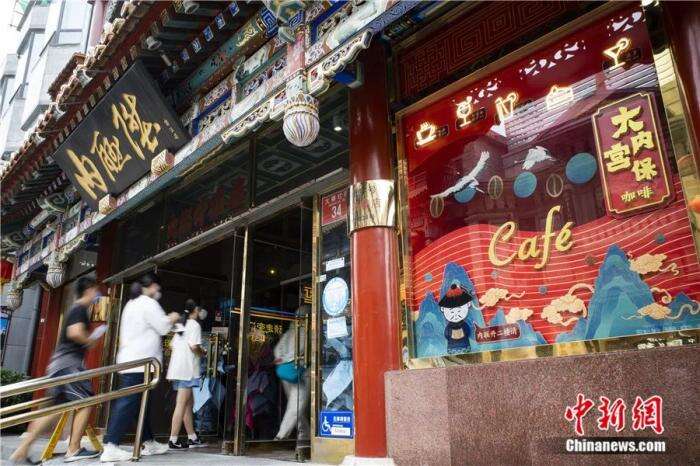 位于北京市前门大栅栏商业街的中国布鞋老字号“内联升”,在店内开设的“大内宫保”咖啡馆吸引市民。侯宇 摄