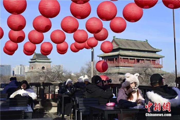 游客在北京什刹海景区一户外咖啡厅休闲。田雨昊 摄