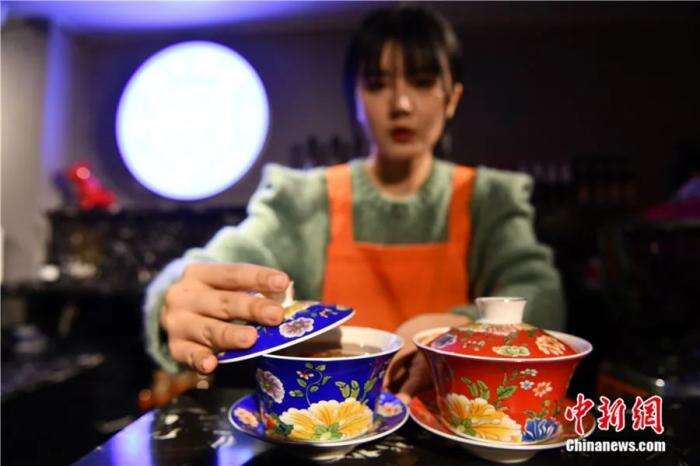 四川成都一家咖啡店推出的花式“盖碗咖啡”受到当地年轻人青睐。张浪 摄