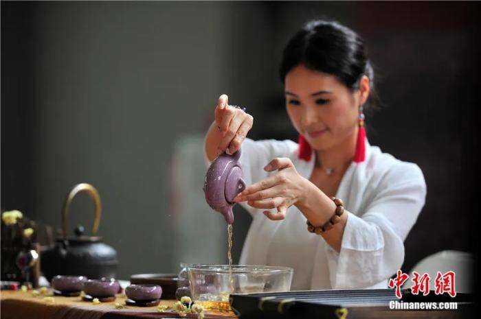 茶艺师向观众展示普洱茶冲泡技艺。刘冉阳 摄