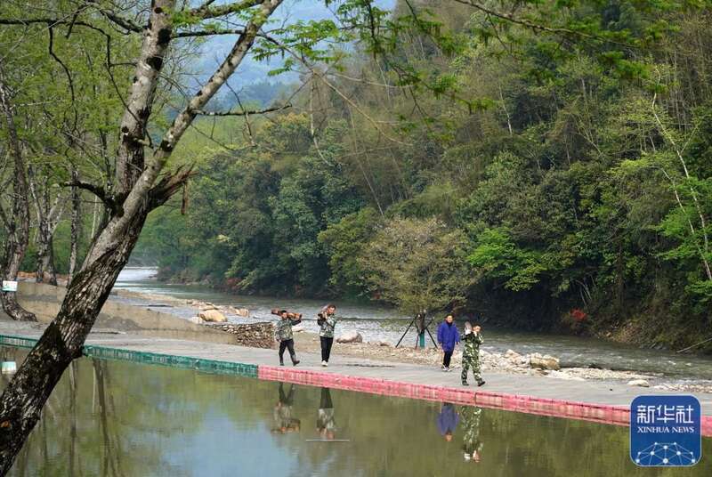 村民在安装小河边的护栏(4月6日摄)。新华社记者 万象 摄