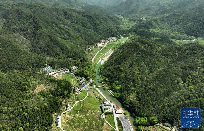 这是4月7日拍摄的江西省靖安县璪都镇港背村(无人机照片)。新华社记者 万象 摄