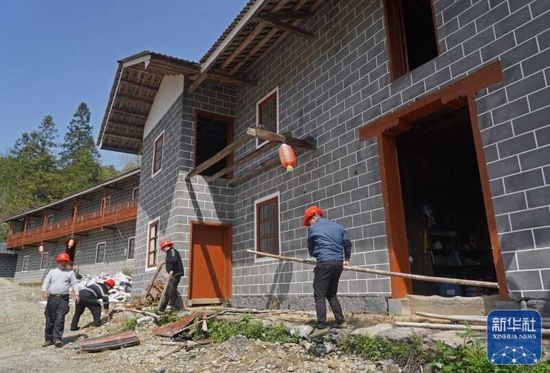 施工人员在村里的老屋前施工,这里将改建成一处旅游民宿(4月7日摄)。新华社记者 万象 摄