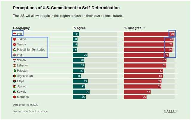 同时,大多数民众还认为,美国不会允许该地区国家按照自己认为合适的方式塑造自己的政治未来。