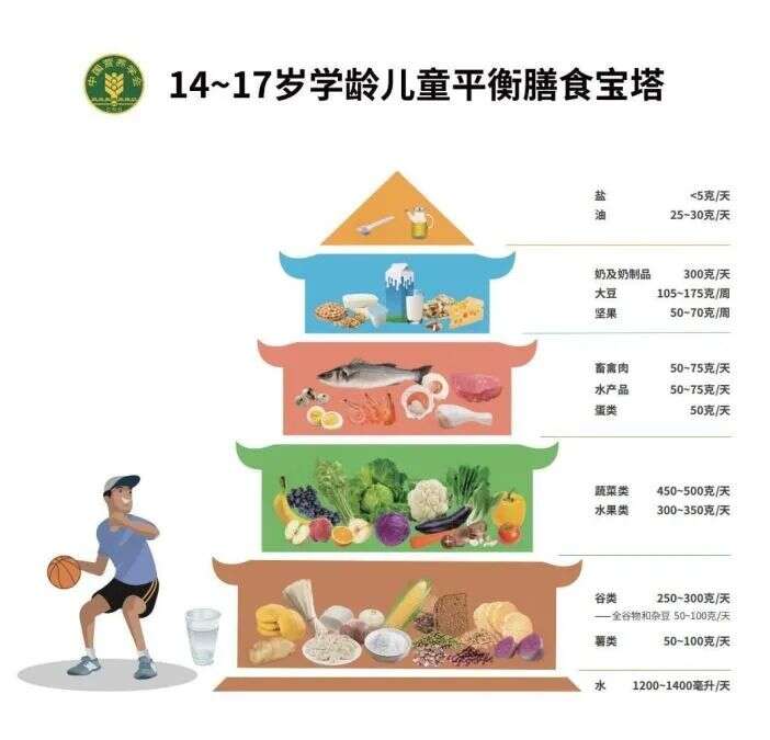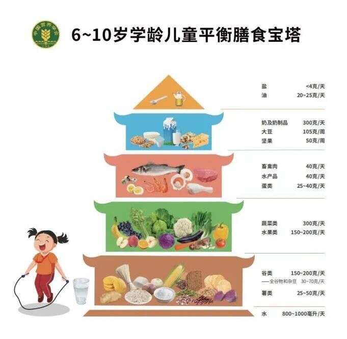研究中儿童主要食物摄入量的参考依据是《中国学龄儿童膳食指南(2022)》中6~10、11~13和14~17岁学龄儿童平衡膳食宝塔推荐量。