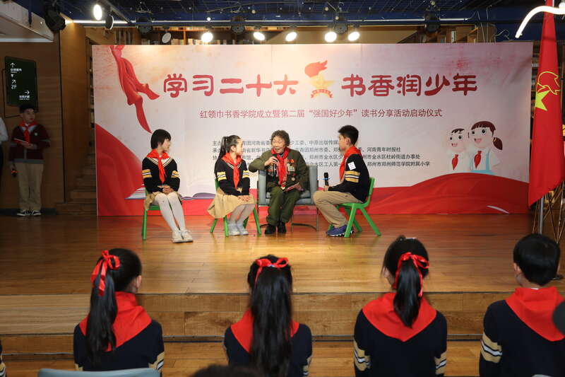 活动现场,与会领导共同启动第二届“强国好少年”读书分享活动活动,并为回声馆首批少先队校外辅导员和“红领巾图书管理员”颁发聘书。 少先队员通过聆听老兵故事、红色剧目表演、原创诗歌朗诵等方式,展示阅读成果。