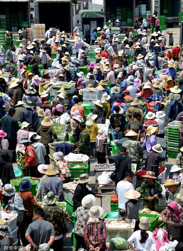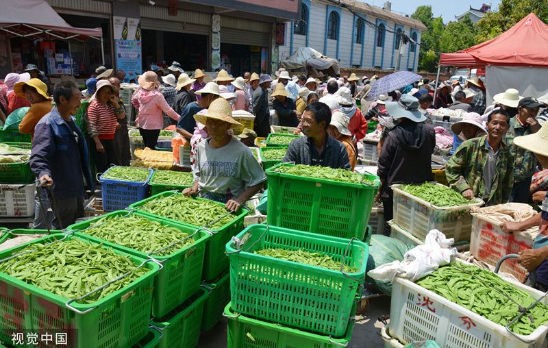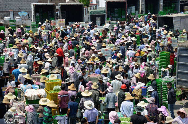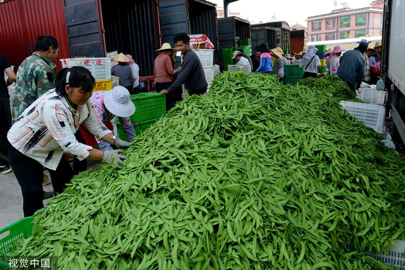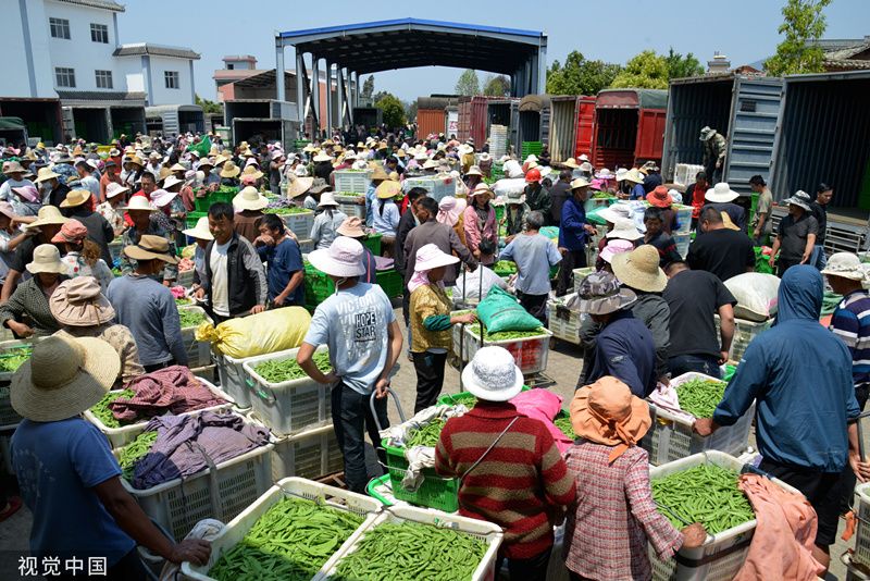 2023年4月18日,云南省昆明市,在晋宁区六街镇鲜食豌豆交易市场,新鲜采收的豌豆集中上市交易的场景异常红火。