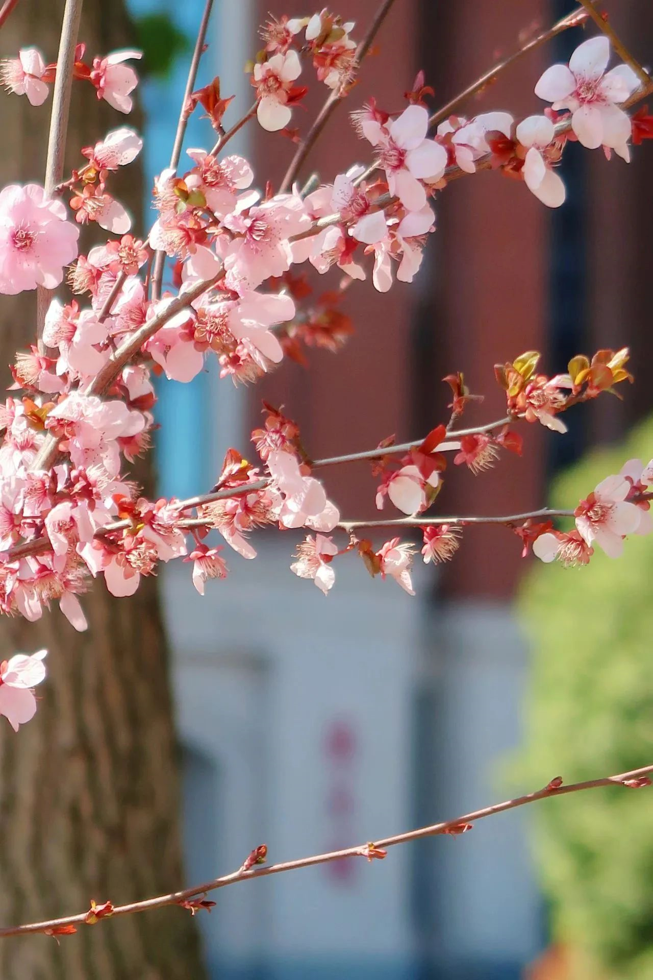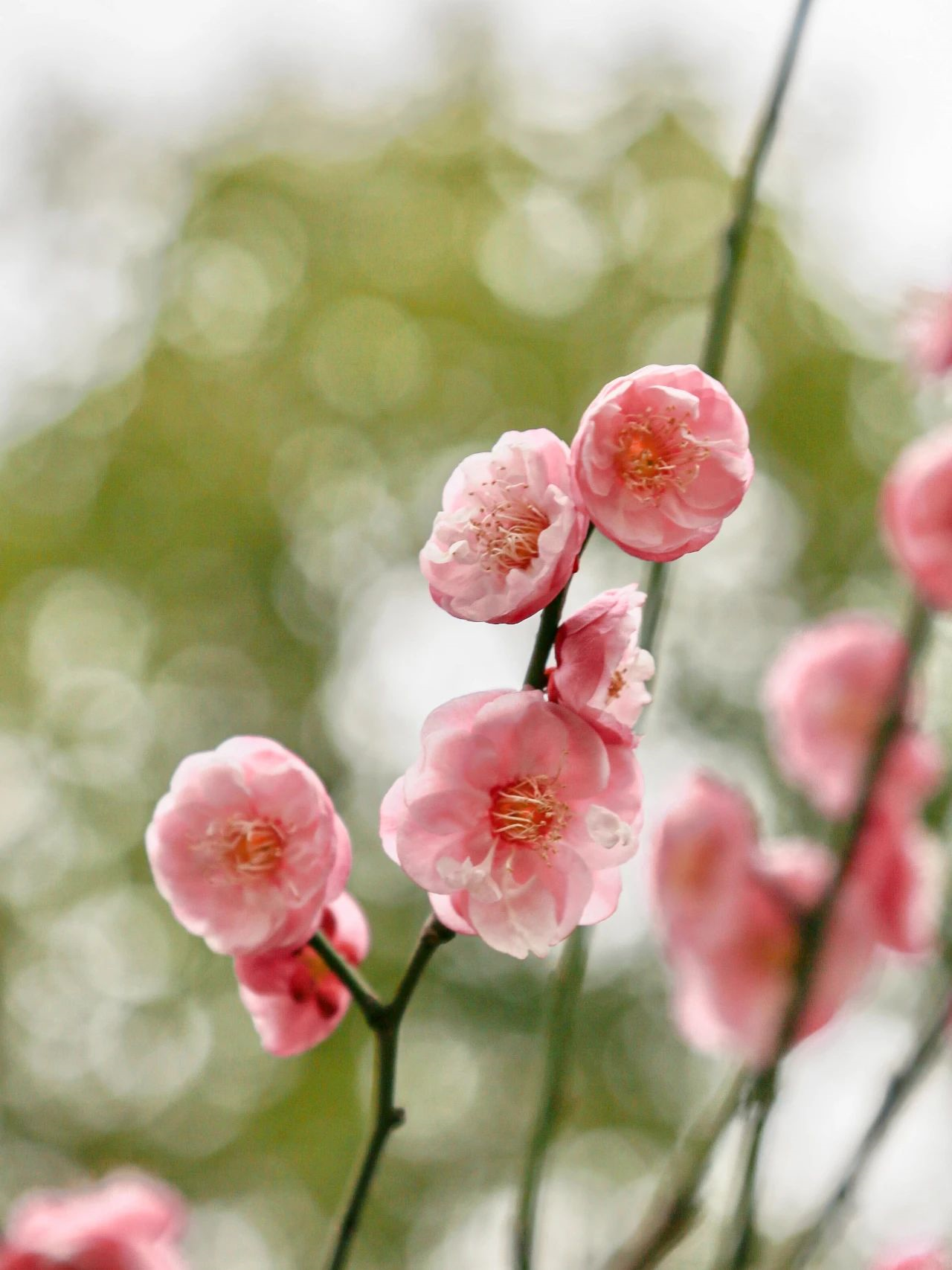 美人梅会在春季凛风散去之后,开出粉色娇艳的花朵。