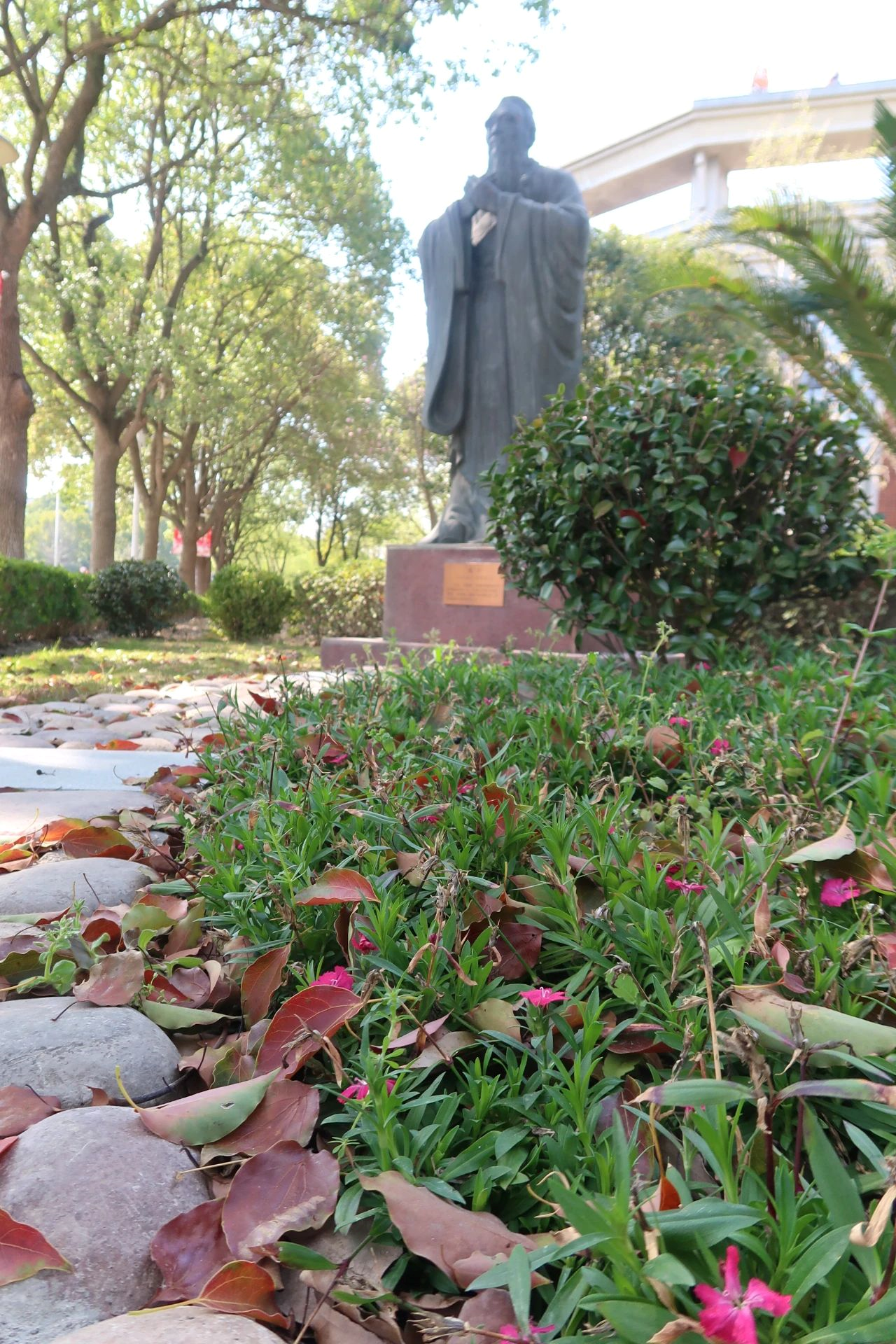 往明实楼方向走去,一棵棵大树下的石头堆里似乎长满了“杂草”。