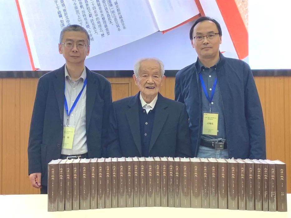 王文楚先生、复旦大学副校长陈志敏、上海古籍出版社社长吕健共同为《大清一统志》新书揭幕