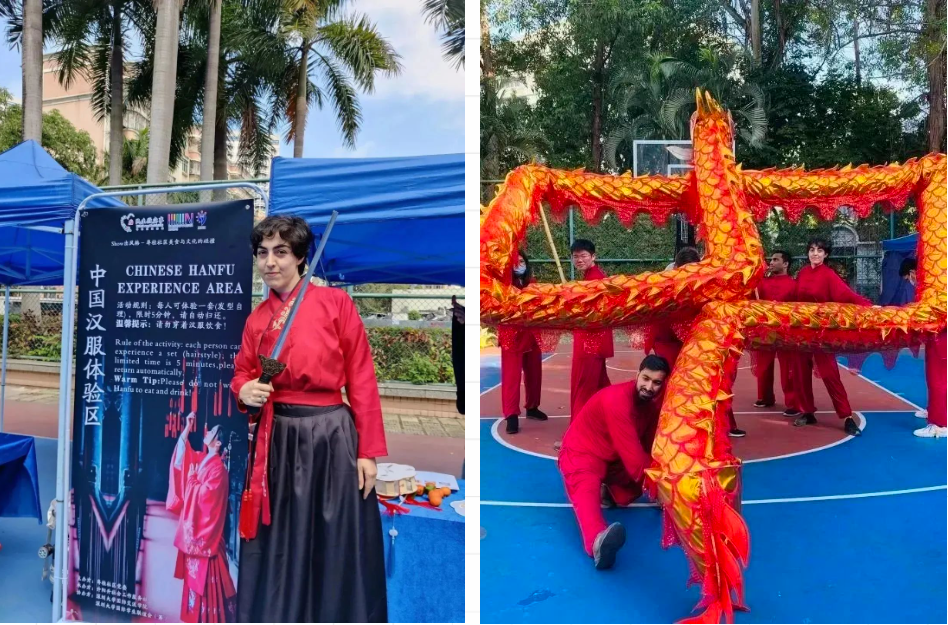 体验穿汉服、学习舞龙表演