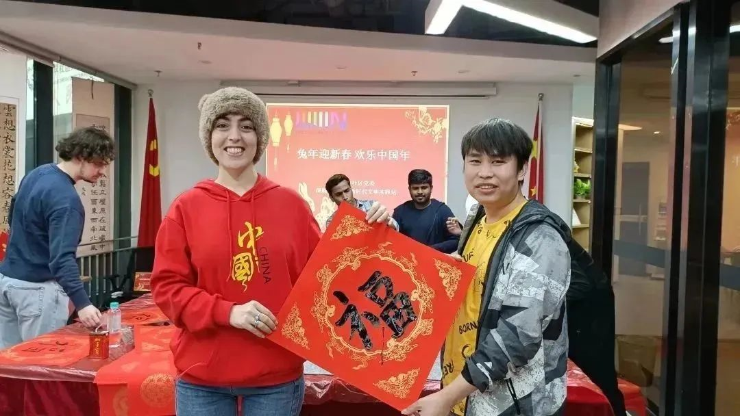 用阿诗玛自己的话来说 ,2023年“过得很充实”,在刚过去的三个月里,她就已经参与了多项公益活动:参加粤桂社区外籍人士志愿服务活动,在现场提供协助服务;代表深圳大学留学生参加粤海·惠企有道团拜会,为粤海街道发展、国际化提出建议;参加“翰墨飘香,春满粤海”贺新春活动,现场写春联和送福字;前往香港大学深圳医院“壹点爱”公益饺子店,制作饺子送给患儿……
