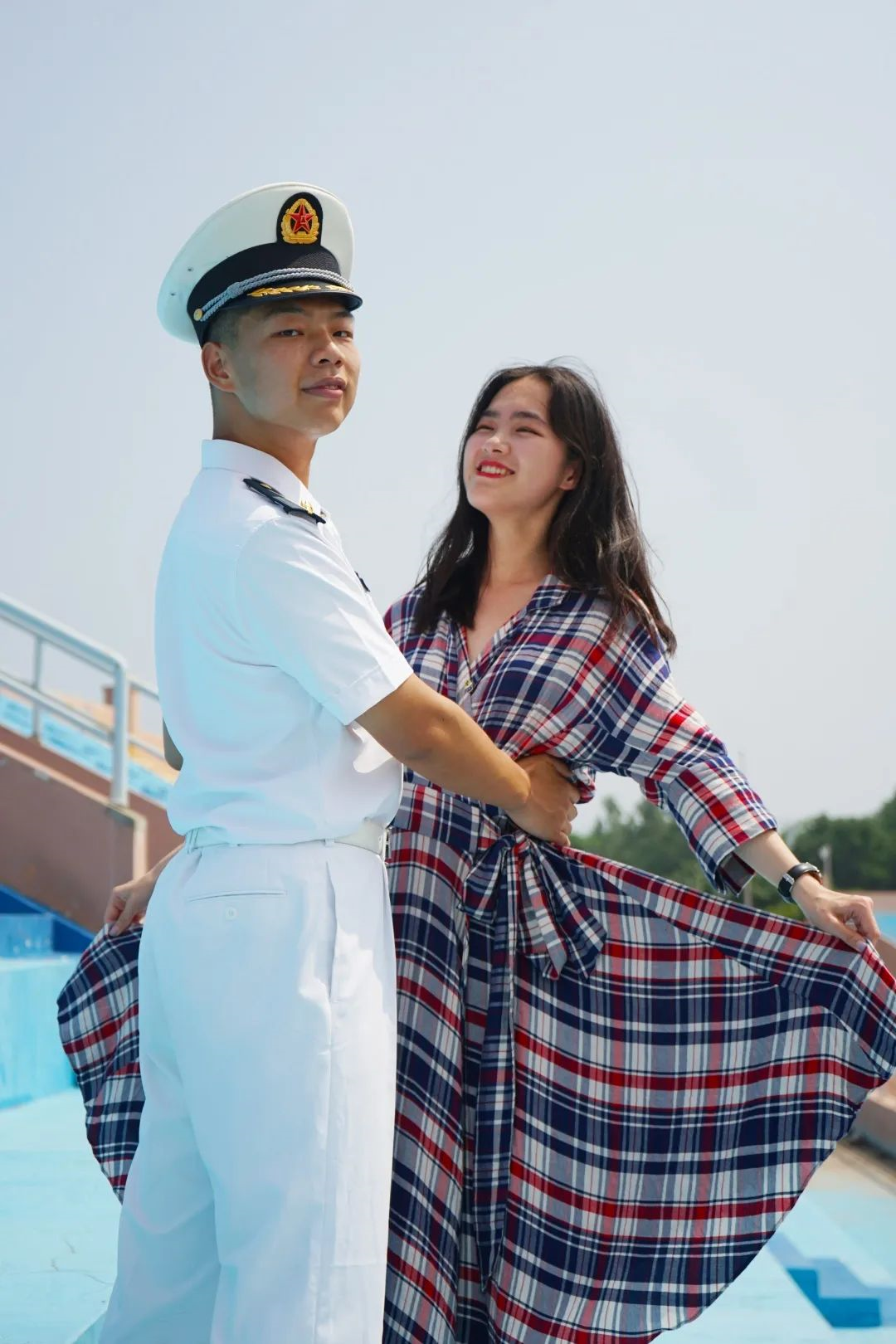 那天集体婚礼上,慕名而来的一位同学被眼前的画面吸引,用相机定格这浪漫的瞬间,相片中一对校友新人相互依偎,在朦胧的光线中诉说无尽的爱意。身穿海军制服的校友名叫刘远洋,身边一袭洁白婚纱的女士是他的妻子汪金淼,新婚燕尔,他们刚领到结婚证就幸运地被选中参加这次集体婚礼。