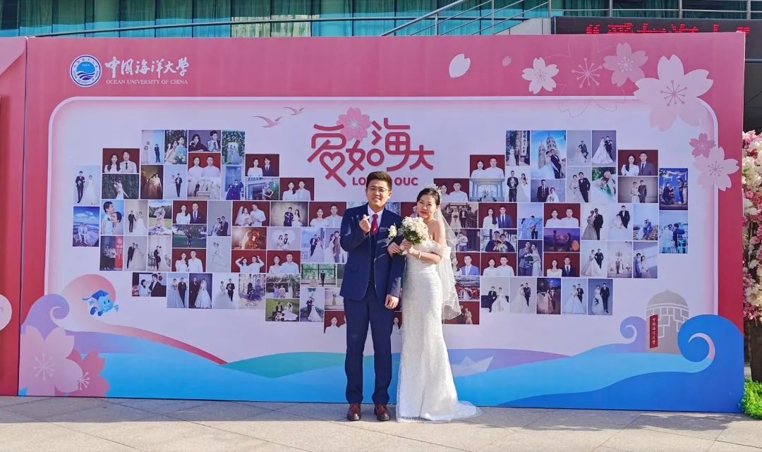 从樱花大道上的撑伞漫步到映月湖畔的挽手并行,从老师们精心录制祝福视频到新人们含泪交换纪念对戒……一幕幕画面唤起了校友们的回忆和感动。王晓光和曹颖便是其中一对恩爱的夫妻。对他们来说,海大不仅是母校,更是他们从校服到婚纱的浪漫见证者!