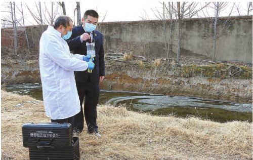 “公益诉讼检察介入后,发现了吕某埋下的另外几百吨固体废物,鉴于此部分事实可能涉嫌犯罪,公益诉讼办案组遂邀请刑事检察部门、检察技术部门介入,协同开展调查取证工作。”据张博介绍,在吕某非法填埋固体废物污染环境案中,东海县检察院借助检察技术对土壤及水质进行快速检测,为案件顺利调查打下了基础。