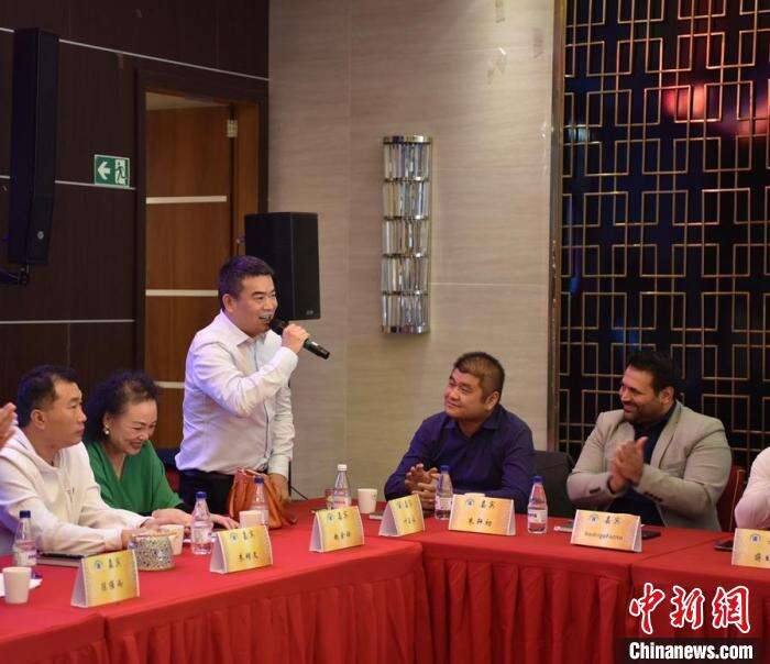 当地时间21日,巴西闽商联合会企业交流座谈会在圣保罗举行。图为巴西闽商联合会会长陈维雨致辞。 林春茵 摄