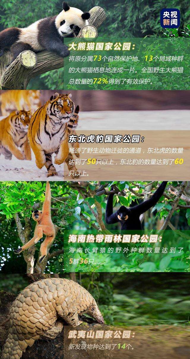 我国建设世界上最大的国家公园体系,重点野生动植物种群稳中有升。65%的高等植物群落,74%的重点保护野生动植物物种得到有效保护,300余种珍稀濒危野生动植物种群得到恢复性增长。