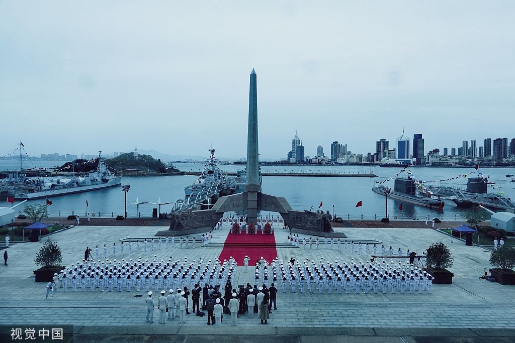 2023年4月23日,青岛,向海军英雄致敬典礼现场。