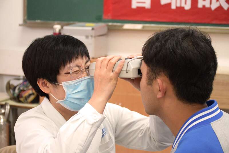 在武定县民族中学,验光师发现,一名学生的眼镜度数足足高出100度。这名学生看不清黑板,向同学借眼镜戴上去后看得见了,便按照同样的度数,在网上买了一副。一开始买的是100度的,后面又买了150度的,看不清后,又买了第三副200度的,每副仅10多元。筛查发现,农村中学生的近视率很高,初中已经超过70%,高中更是不容小觑。据介绍,有的高中生近视超过500度,仅有0.1的视力,但由于父母在外务工,孩子们认为眼镜很贵,一直没有和家长说,也没有配眼镜,听课时他们都看不清黑板,成绩慢慢落后了;有的没有经过专业验光就自己买了眼镜配戴;有的在网上购买10多元的隐形眼镜和美瞳配戴,不仅起不到矫正的效果,还因不卫生的配戴使眼睛发炎;这些学生中,有的两三百度、有的四五百度、甚至还有九百度的,但是他们很多都没有配戴过眼镜。