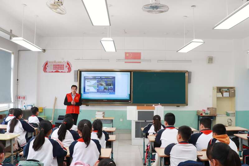 近日,“青芯”志愿服务队开展了“建证未来·双碳行动进校园”主题活动,本次活动以“互动课堂+体验式学习”的形式开展。课堂上,授课志愿者通过动画视频、互动问答等方式深入浅出地为孩子们讲解了“碳达峰”“碳中和”等相关知识,引导学生认识“双碳”战略,了解建筑行业在践行绿色发展理念上的部署和行动。