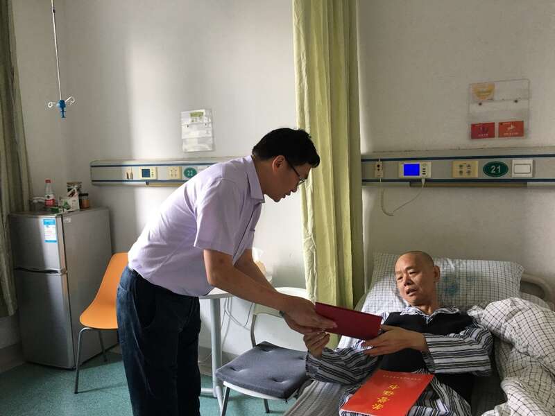 杨汉文长期扎根讲台、兢兢业业,坚持以德立身、以德立学、以德施教,获评2019年校“三育人奖”“师德先进个人”称号,在病床上仍心系学生、心系教育。他表示,感谢学校对自己的关心和爱护,争取早日康复重返讲台。