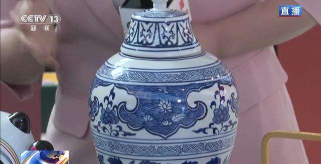 总台记者 陈丽:接下来看看这个青花瓷摆件,它的造型十分独特,印的花纹也很精致。不仅吸引了我,也吸引了很多外商的注意力。