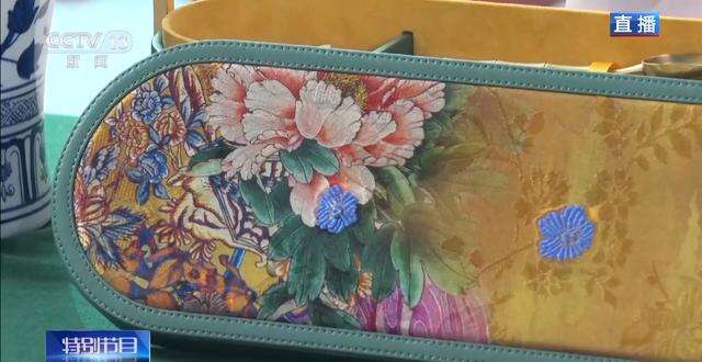 总台记者 陈丽:最后要展示的这两个是茶礼盒,盒子上的国花牡丹花印在香云纱的布料上,圆形的造型体现传统文化中“天圆地方”的设计理念,这款产品也收到了很多外商的咨询。