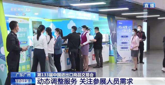 总台记者 吴媚苗:主通道两侧有非常多为参展商提供服务的企业。这里有白云机场的一个展位,机场的柜台有什么特别之处呢?其实,今年广交会首次推出了在展馆现场就能办理值机的服务。现在第二期已经进入第三天,广交会展期进展过半,不少采购商开始计划着回程了。部分购买了机票的旅客可以在现场经过一系列流程之后,把行李交给柜台的工作人员进行委托托运,同时,提前办好值机、选座等手续,免去了从这么大一个会场带行李去机场的舟车劳顿。同时,这两天,广交会琶洲往返白云机场的专线也根据客商需求增加了班次,达到了全天12趟以上的运力。