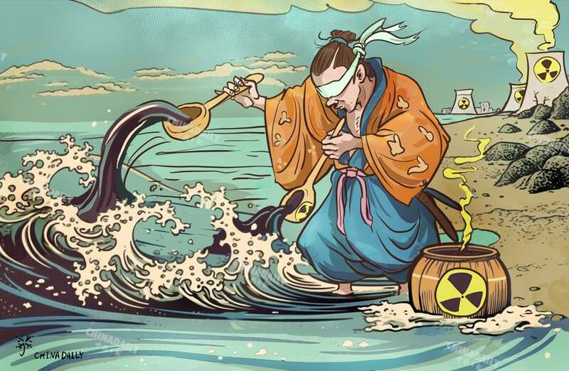 日本政府悍然“蒙上双眼”决定将福岛第一核电站的百万吨核污水经过滤稀释后排入大海。(来源:中国日报 马雪晶 英文《中国日报》2023年4月28日8版)(版权所有 未经授权不得转载)