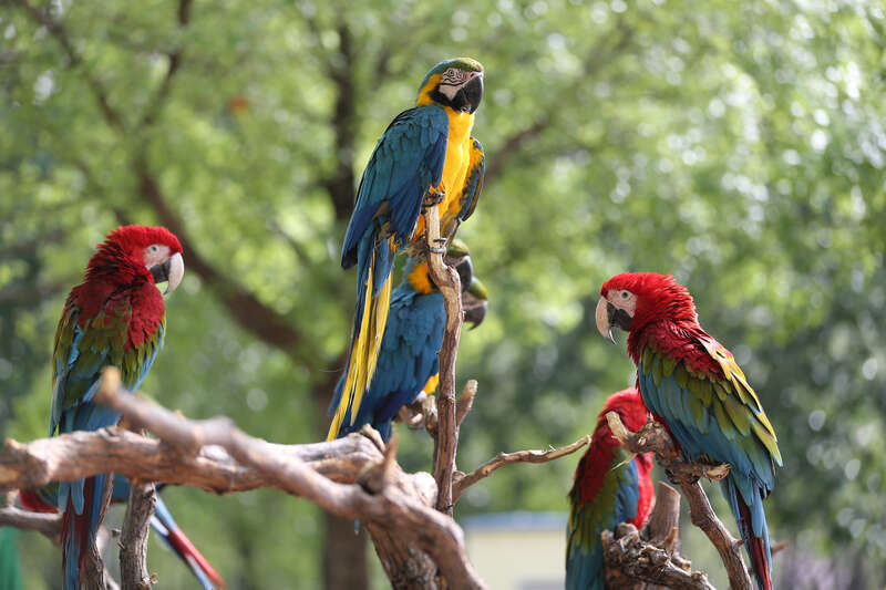 据介绍,“乐环球动物主题乐园”主张“游客与动物成为好朋友”的理念,让人与动物能在这里零距离接触。园内有金刚鹦鹉、马鹿、红鹮、火烈鸟、宠物驴、盘羊等1400余只。第一期园区设有提供游客与动物亲密接触的四个互动区域,游客可以上环尾狐猴岛亲密喂食、乘观光火车游览草食动物的家,也可以零距离与鹦鹉馆和雉鸡园的动物互动。游园期间,游客还能欣赏到精彩震撼的鸟禽类行为展示——孔雀东南飞,由多只孔雀同时展翅齐飞,形成一场别开生面的原生态视觉盛宴。(图片由西青区水高庄园提供)
