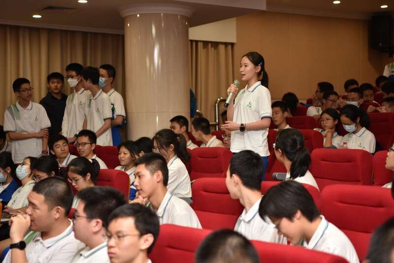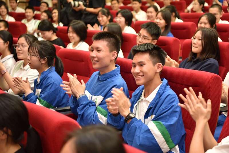 施一公院士在华南师范大学附属中学开讲。受访者供图