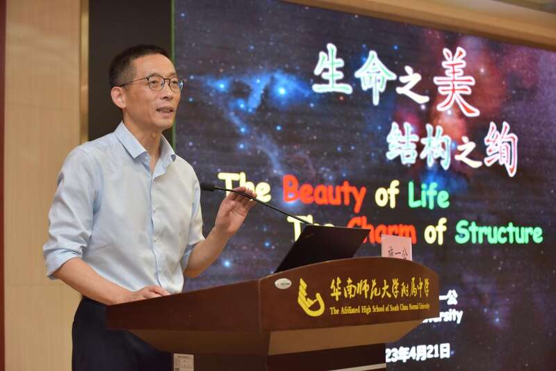 中国青年报客户端讯(牟方婷 中青报·中青网记者 林洁)近日,中国科学院院士、结构生物学家、西湖大学校长施一公来到华南师范大学附属中学,为中学生们开展以“生命之美、结构之绚”为主题的科普讲座。施一公鼓励同学们要独立思考,勇于创新,“科学就是不断求真的历程”。