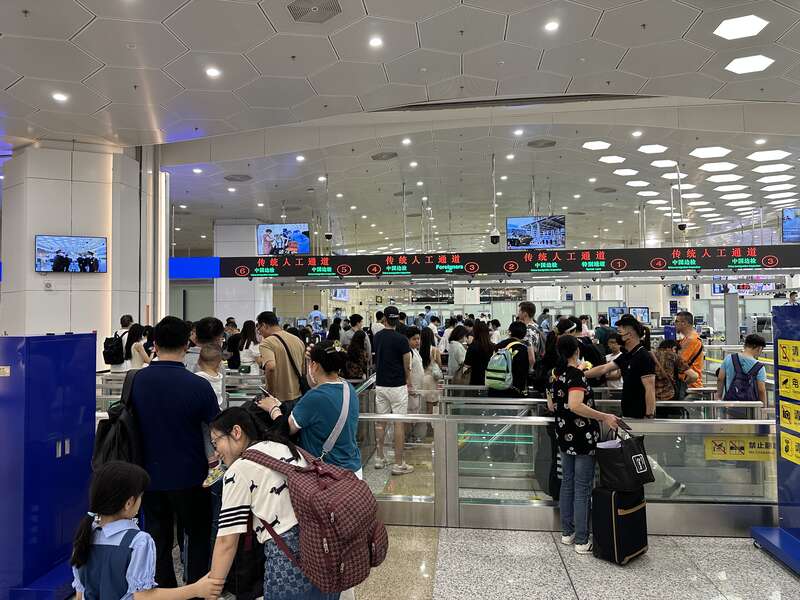 出境旅客正有序通关。横琴边检站供图