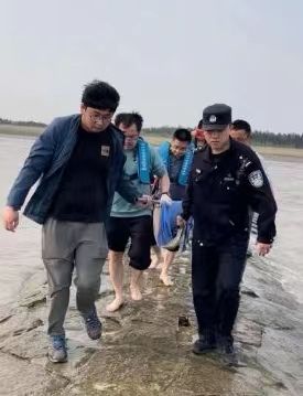 崇明公安分局陈家镇派出所民警接警后立即赶到现场,几名群众将滩涂上不远处一条黑色大鱼指给民警看。意识到极有可能是国家保护动物,民警招呼大家一起卷起裤腿下水,试着将大鱼放生至深水处,不想连着几次,大鱼随着潮水又游回了滩涂上。