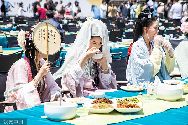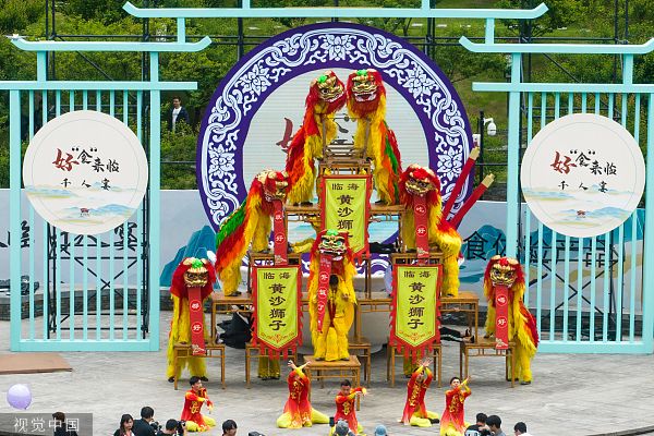 2023年4月30日,浙江台州,一场美食千人宴在临海市台州府城巾山广场举行。