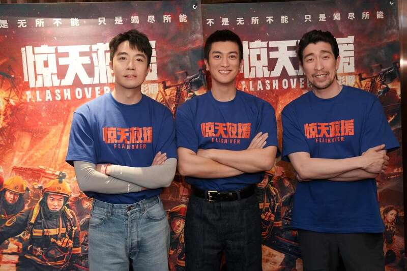 《惊天救援》主演俞灏明、杜江、王千源上海路演合影