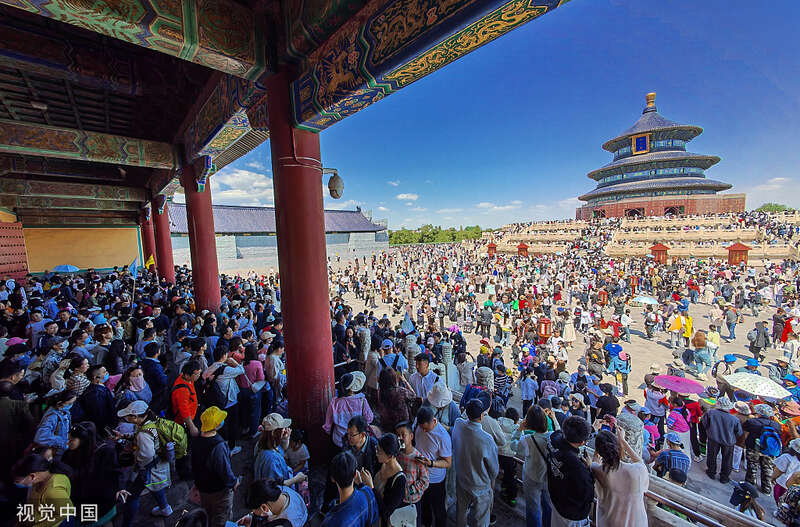 2023年4月30日,北京,天坛公园游人如织。视觉中国 图