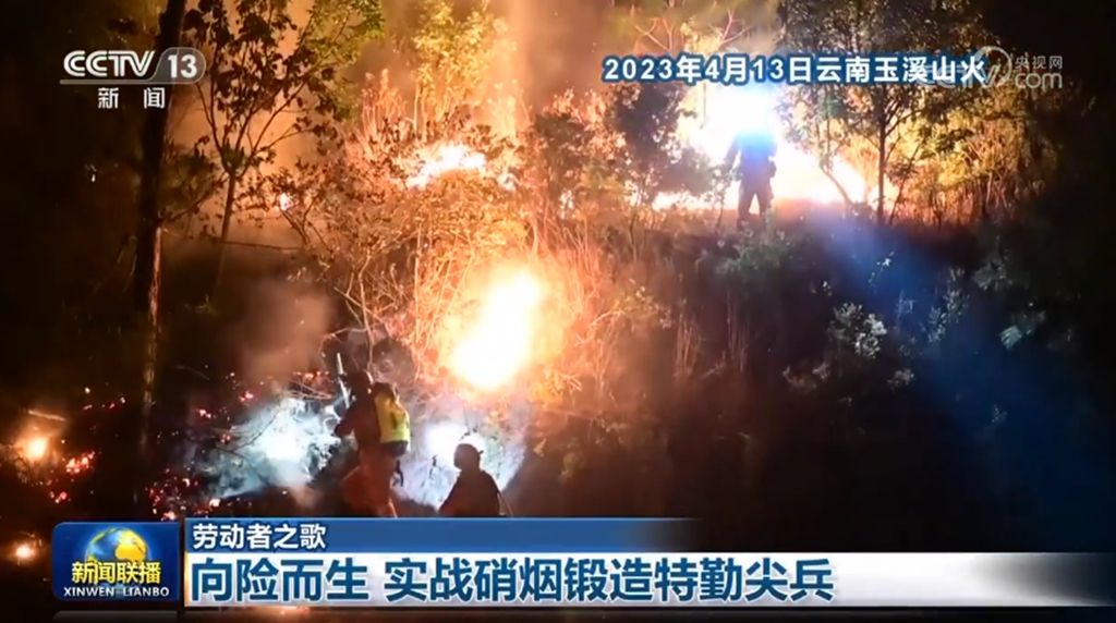 这是今年4月13日特勤大队在云南省玉溪市江川区扑救森林火灾的场景,当时由于风力较大,火势不断蔓延,在距离火场不到1公里的地方有一个存放约20吨烟花爆竹的烟花厂,情况十分危急。